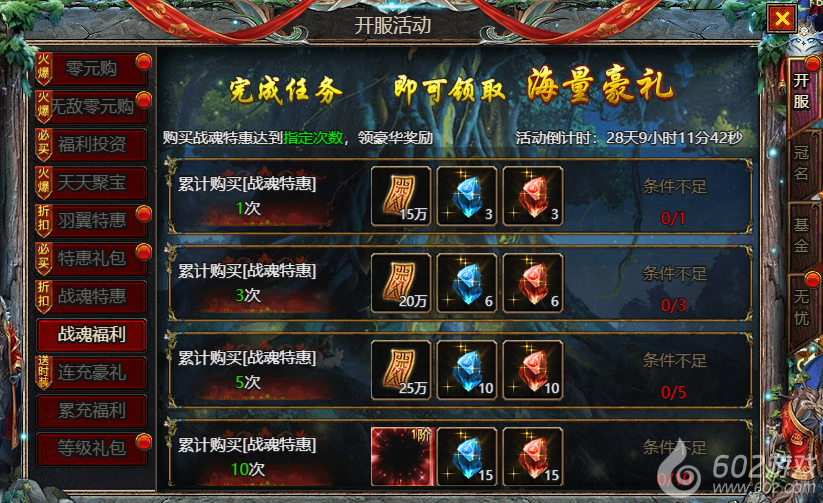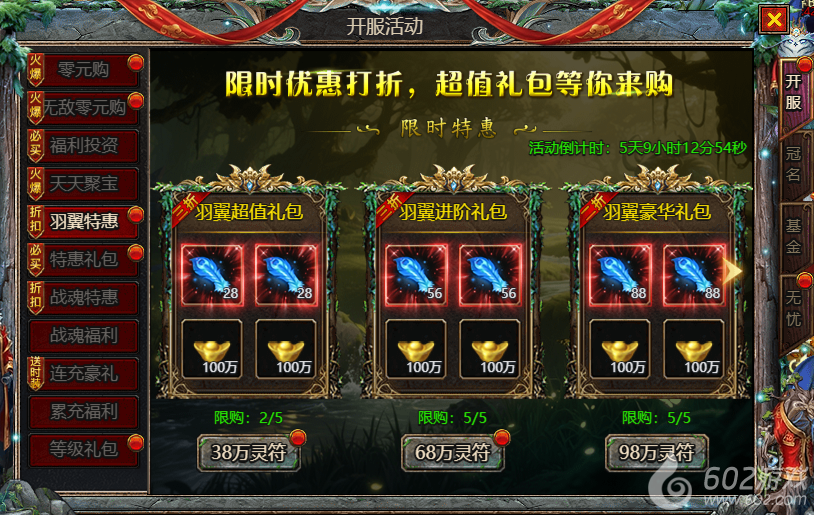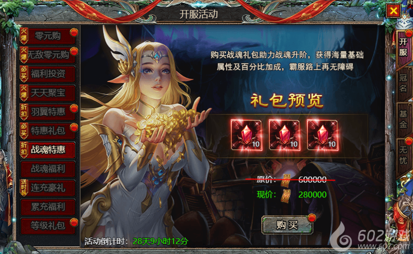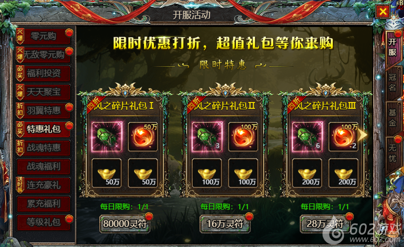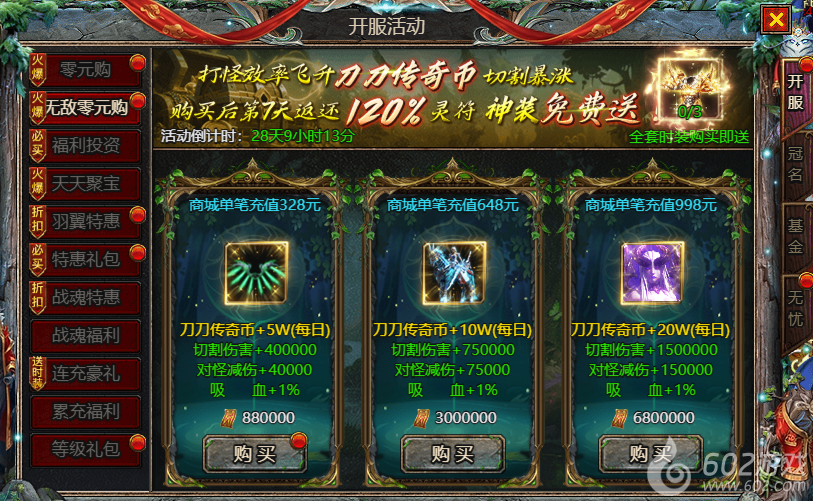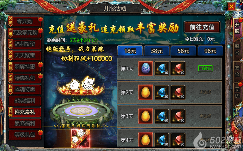 602《众神大陆》开服活动1 零元购 无敌零元购 福利投资 天天聚宝 羽翼特惠 特惠礼包 战魂特惠 战魂福利 连充豪礼 累充豪礼 等级礼包