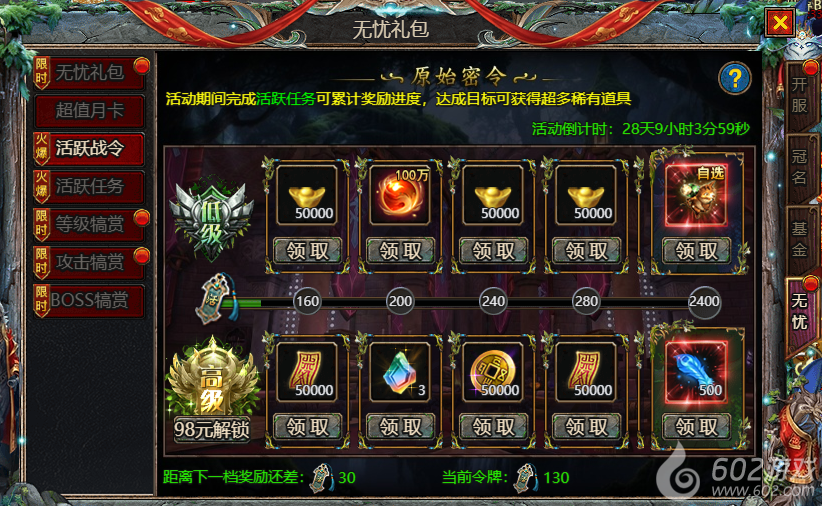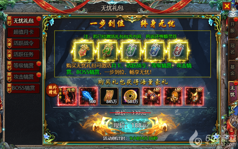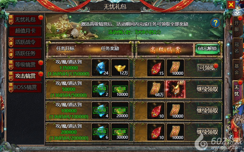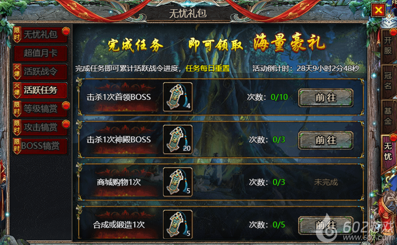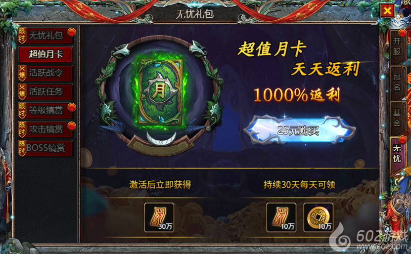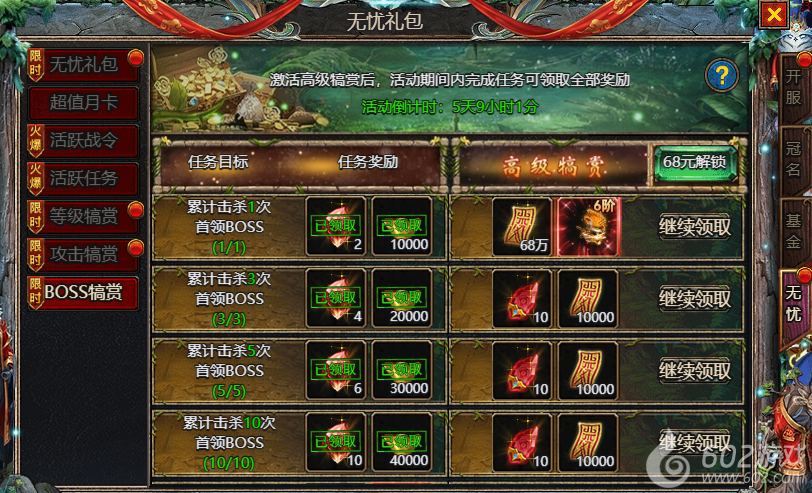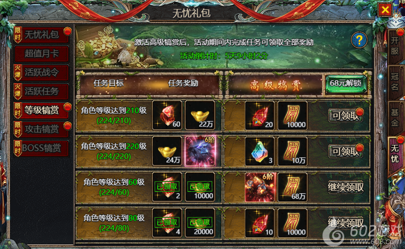602《众神大陆》惊喜礼包 惊喜特惠 魂环礼包 剑魂礼包 无忧礼包 超值月卡 活跃战令 活跃任务 等级犒赏 攻击犒赏 BOSS犒赏